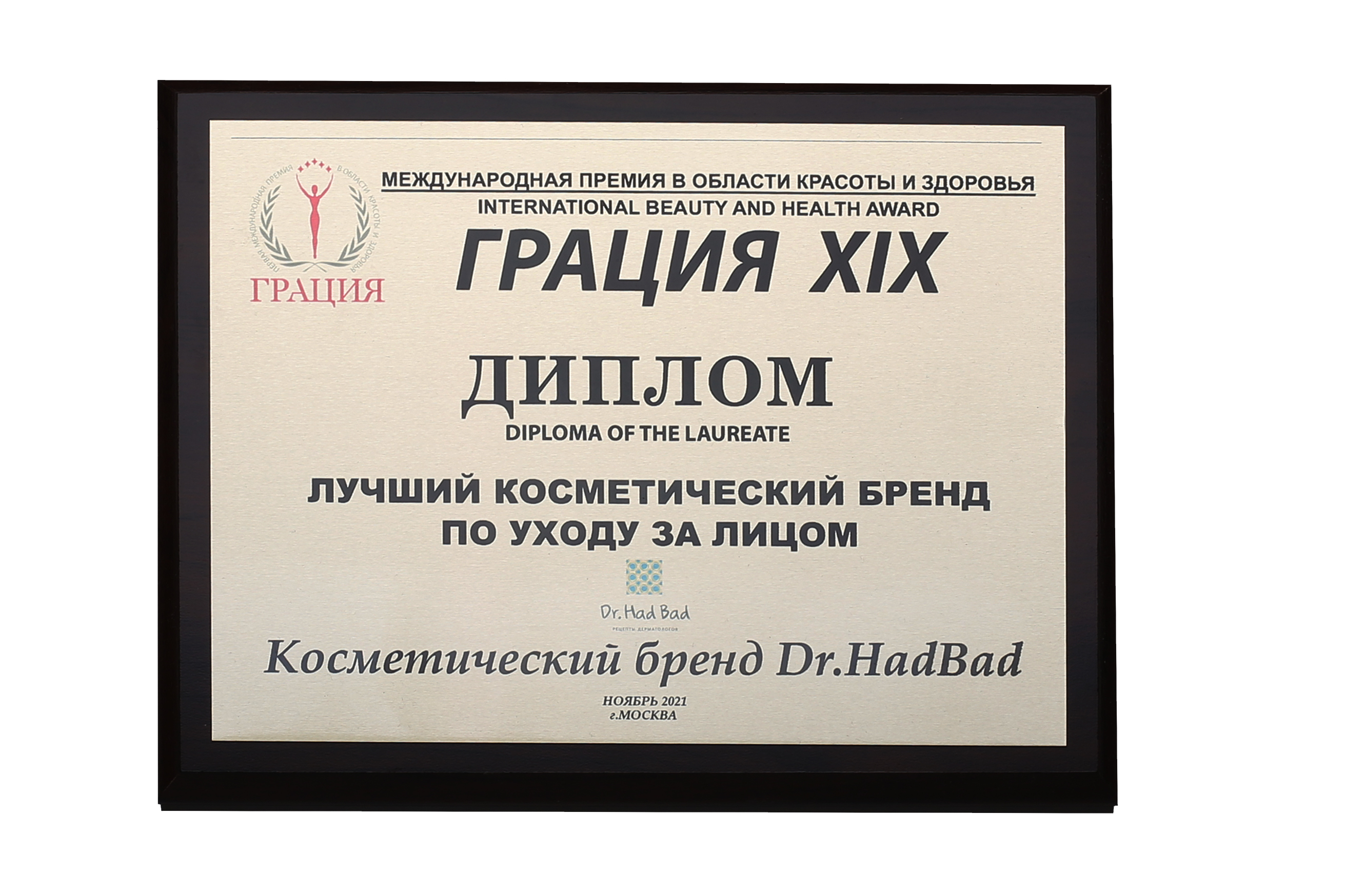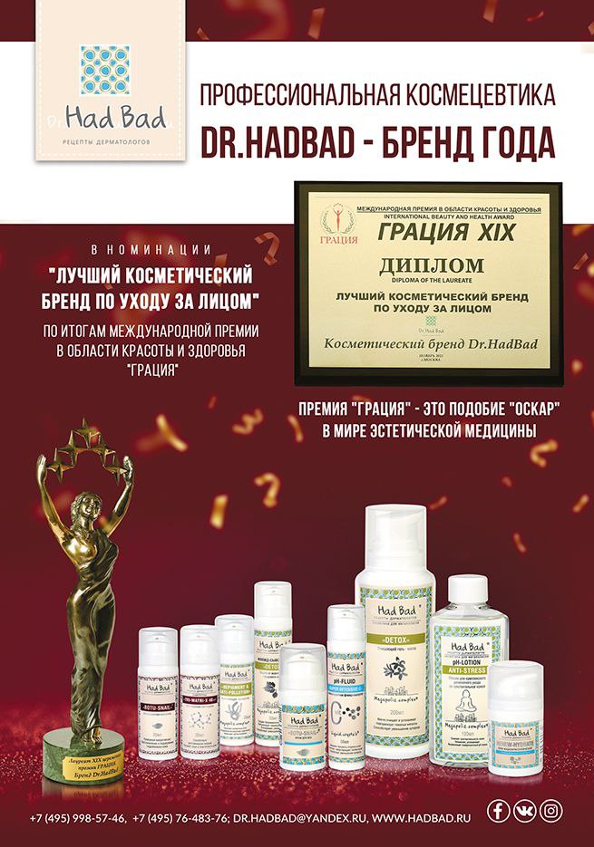 - Dr.HadBad - лауреат премии "Грация" в номинации " Лучший косметический бренд по уходу за лицом". Грация - это "Оскар" в бьюти - индустрии.