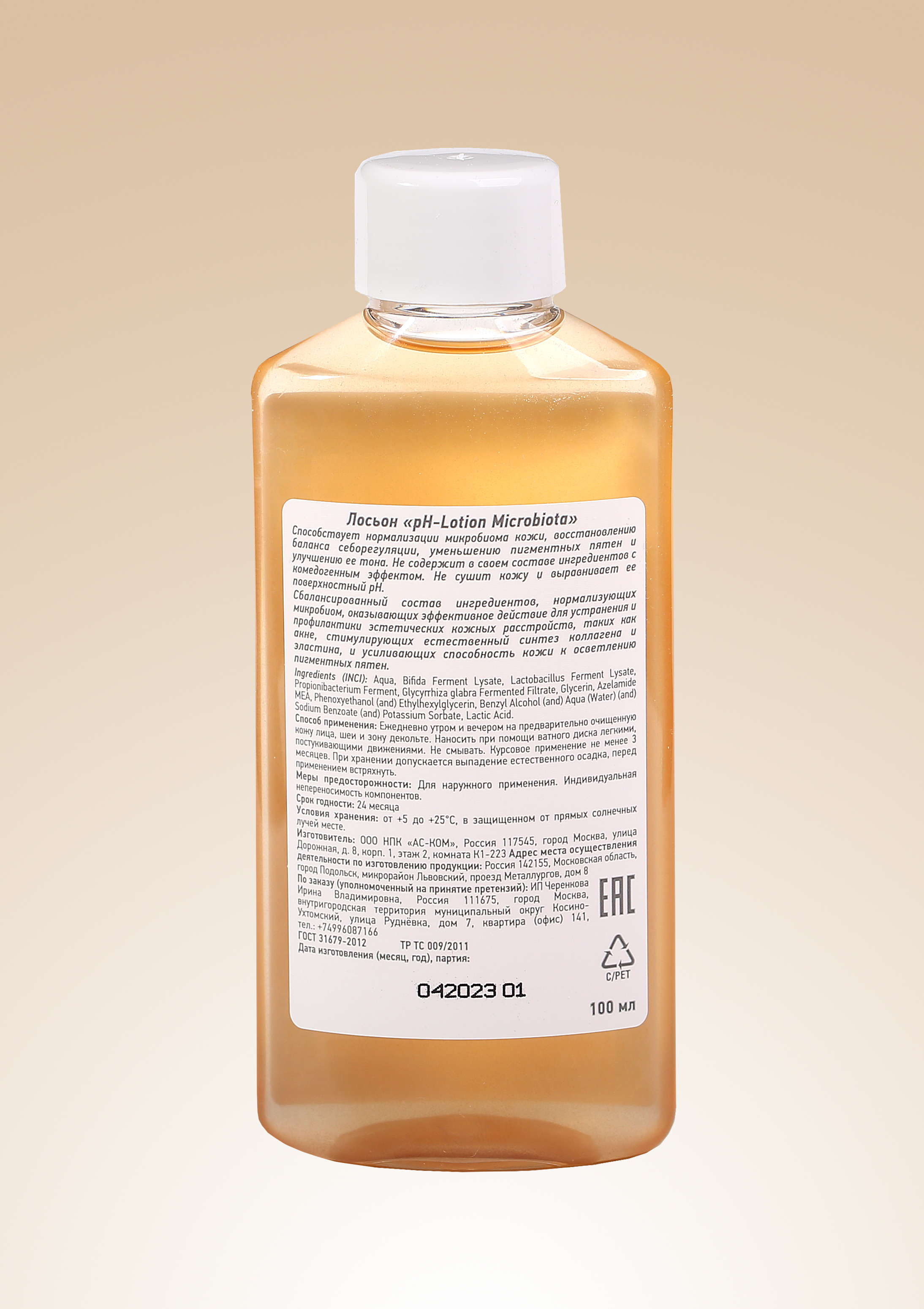 Как работает: за счет наличия молочной кислоты и слабокислой рН ( около 3,5), создаются благоприятные условия для функционирования полезной микрофлоры, а так же для правильной работы ферментов кожи. Молочная кислота - единственная из АНА, не разрушающая липидный барьер кожи. Она наиболее физиологична, так как входит в состав натурального увлажняющего фактора кожи, создает благоприятные условия для поддержания баланса микробиоты.